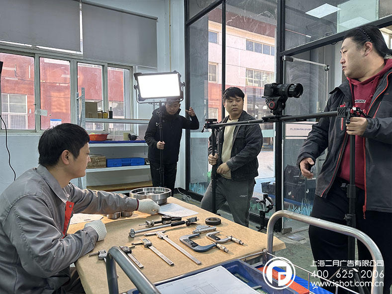 拍摄当天,二月广告摄制团队便扎进了博盛的盾构机承载轮工况模拟试验台—— 这个庞然大物是博盛核心产品的 “考场”,摄影师架起设备,捕捉液压装置下压时承载轮的受力状态,金属与聚氨酯的摩擦声里,藏着产品的可靠性密码。车间里码放整齐的聚氨酯部件成了天然的 “工业美学布景”:银亮的金属筒身、黄铜色的成品轮组,在灯光下泛着精密加工的光泽。摄影师蹲守在模具库旁,记录下工人将原料送入设备的瞬间;实验室里,穿着白大褂的技术人员调试试剂,镜头掠过烧杯与仪器,定格下产品从配方到成品的研发链路。拍摄中,二月广告摄制团队没少 “追着细节跑”:工人用卡尺测量部件精度时,灯光师立刻调整柔光角度,让量具上的刻度清晰可见;车间吊运原料的起重机划过画面,摄影师顺势拉出全景,把 “忙碌但有序” 的生产节奏装进镜头里。博盛的工人笑着说:“平时天天摸这些零件,今天才发现它们在镜头里这么‘有劲儿’。” 二月广告的黄导则说,好的企业宣传片,不只是摆拍漂亮,更是让观众透过画面,摸到企业的 “实干温度”—— 比如试验台的金属划痕、成品堆垛的规整、实验室里贴满标签的试剂瓶,都是博盛 “把产品做扎实” 的注脚。我们相信在二月广告专业团队的精心创作下,一定会为客户敬上一部完美的企业宣传片作品。下面我们先跟随一组拍摄花絮图片去一探拍摄幕后的精彩吧!